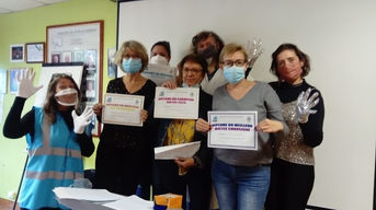 22 participant-e-s ont réalisé dans la bonne humeur 4 dictées en LSF, Chant'Signes, LSF avec masque, puis les 3 en même temps. Bravo aux gagnantes !